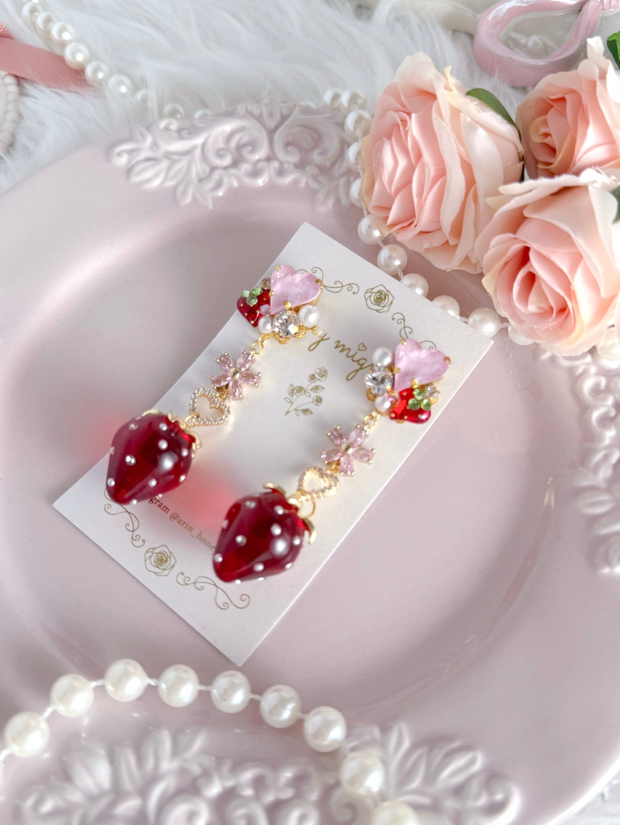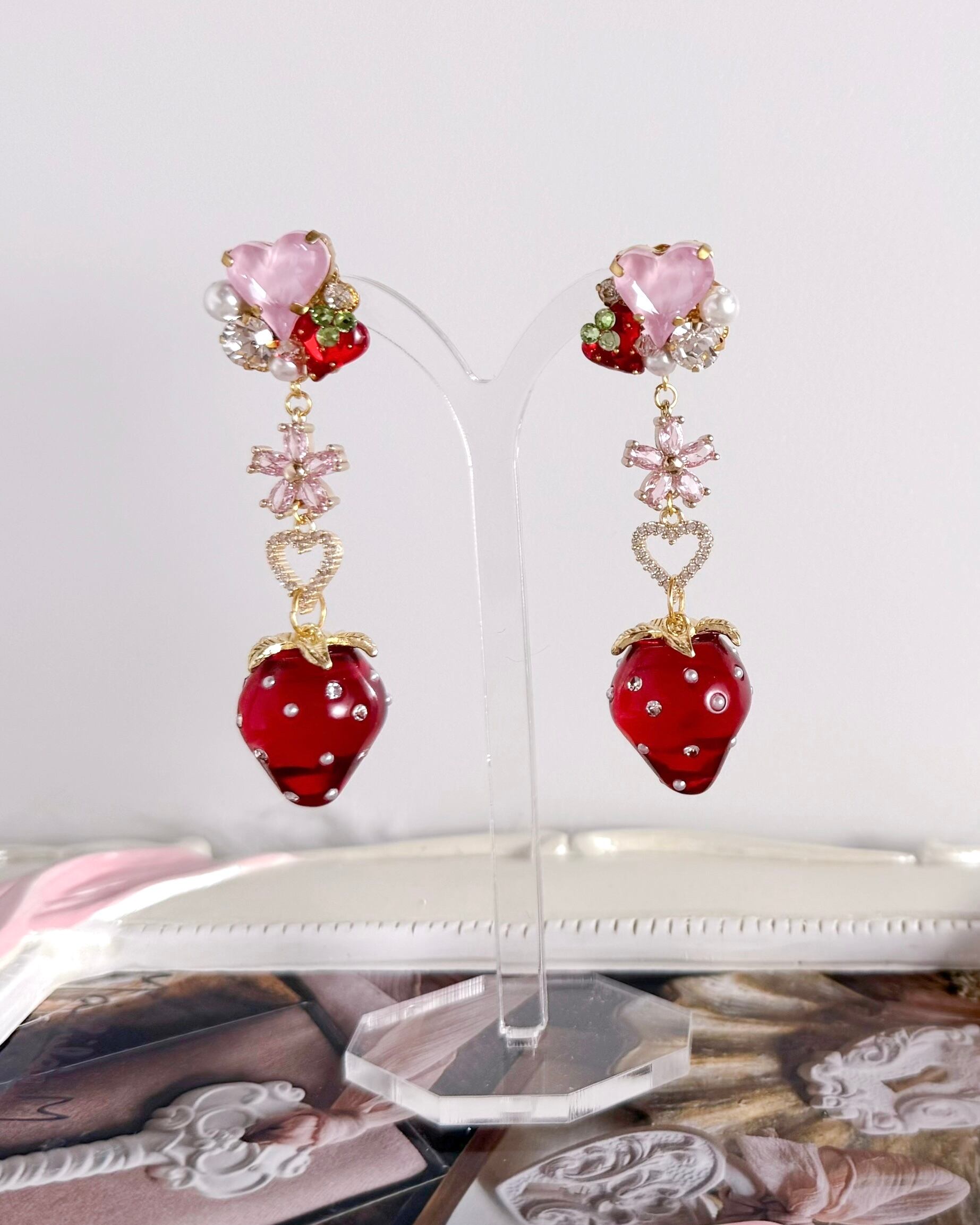 まるで小さなジュエリーのようないちごが、耳元で存在感を放ち、視線を惹きつけます。