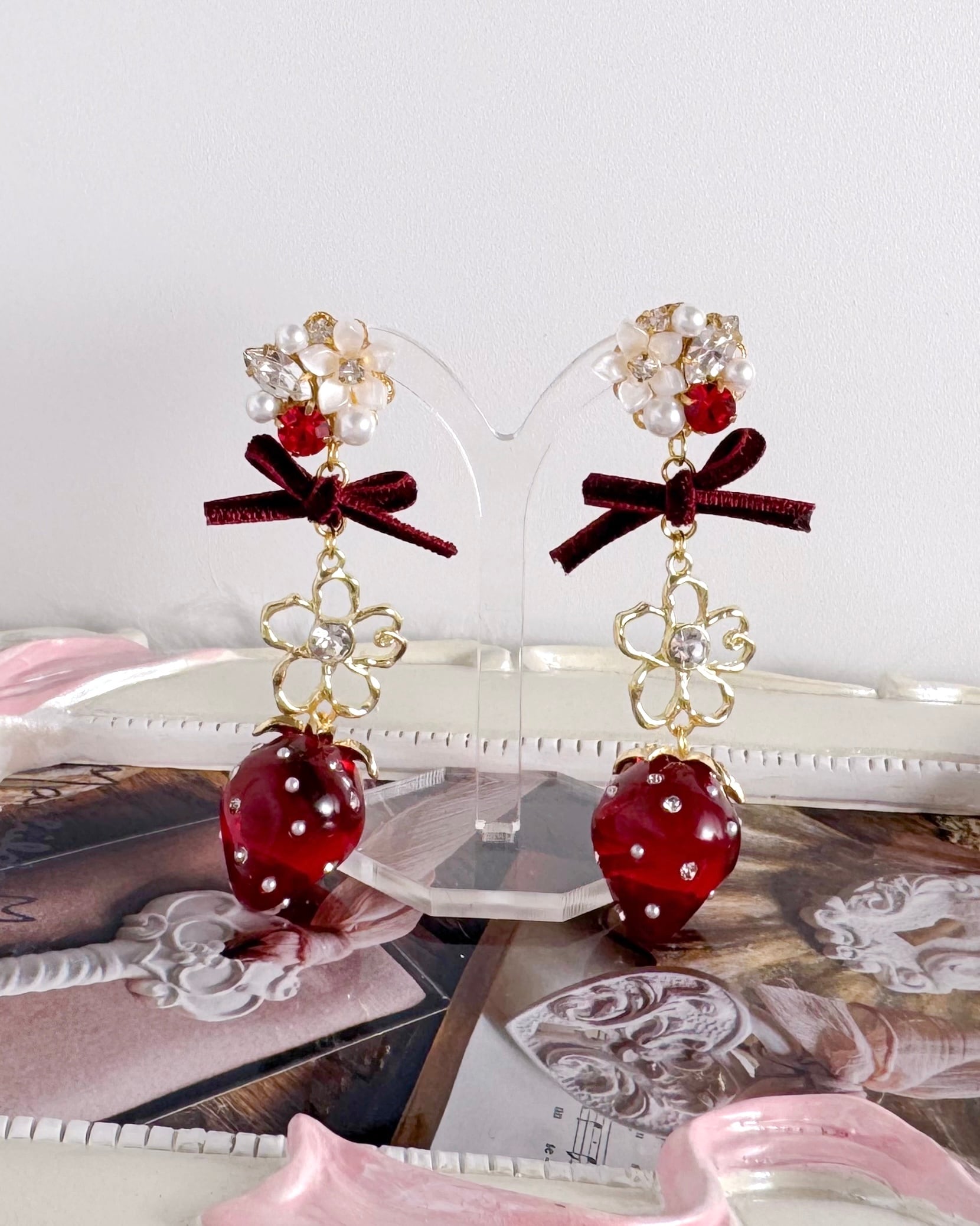 立体的なイチゴの深みのある赤と、繊細な装飾が連なり、耳元で豊かな表情を演出します。