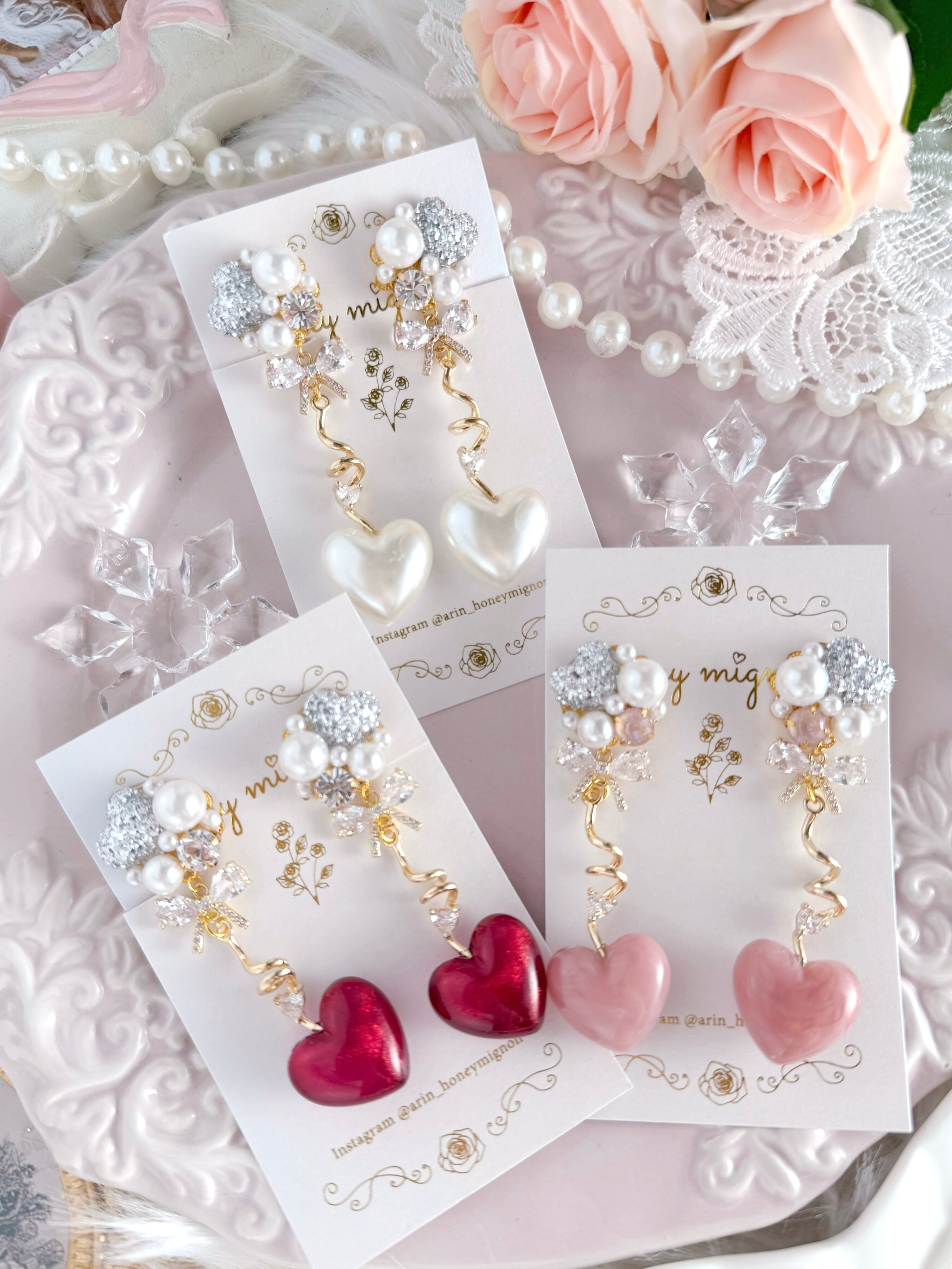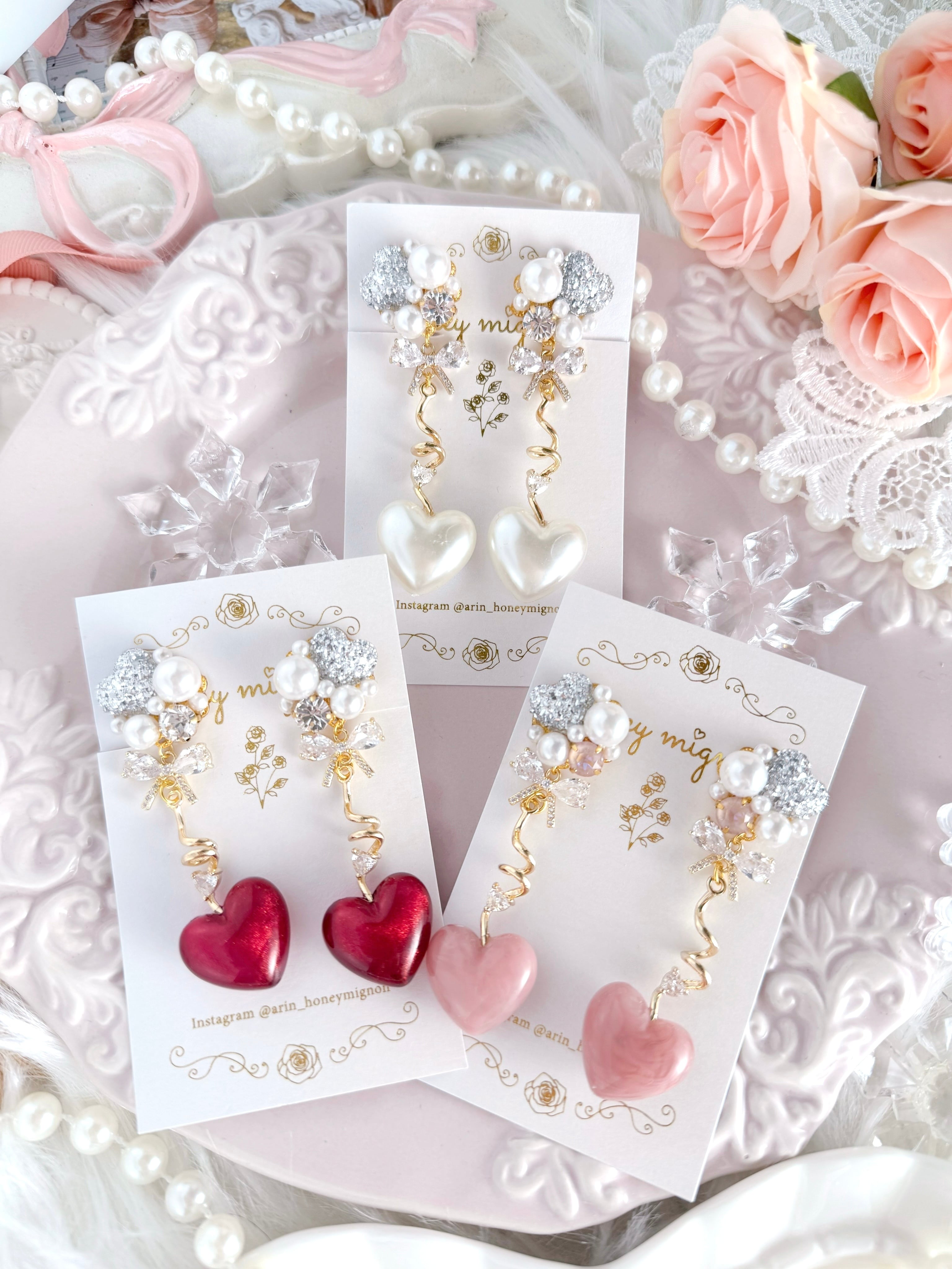 やわらかな光をまとったハートと、パールの穏やかな輝きが調和し、落ち着いた華やかさをもたらします。