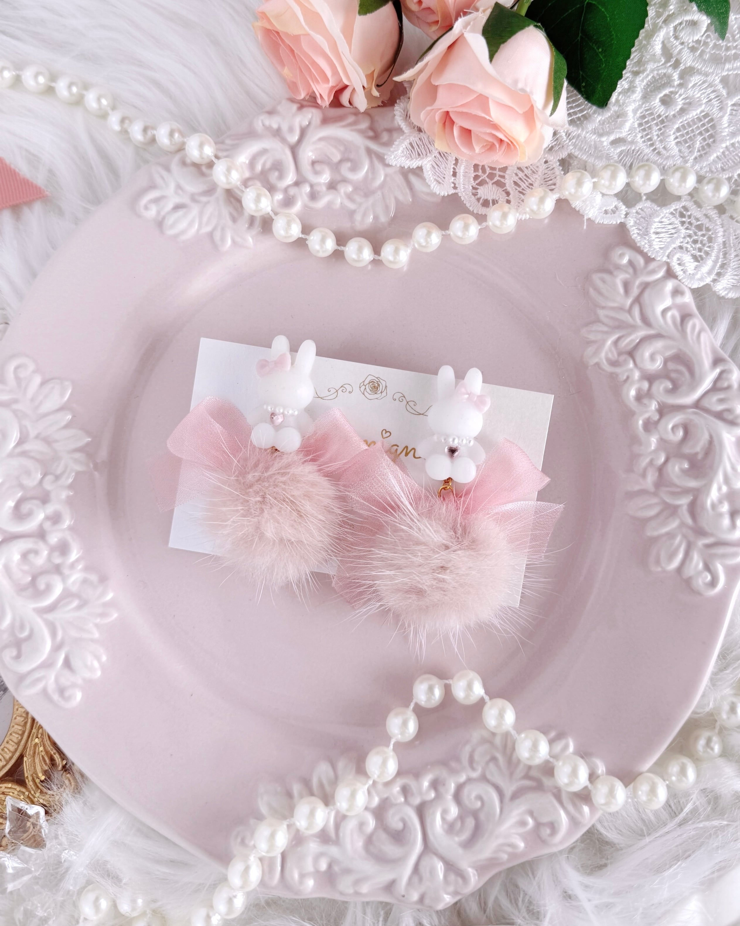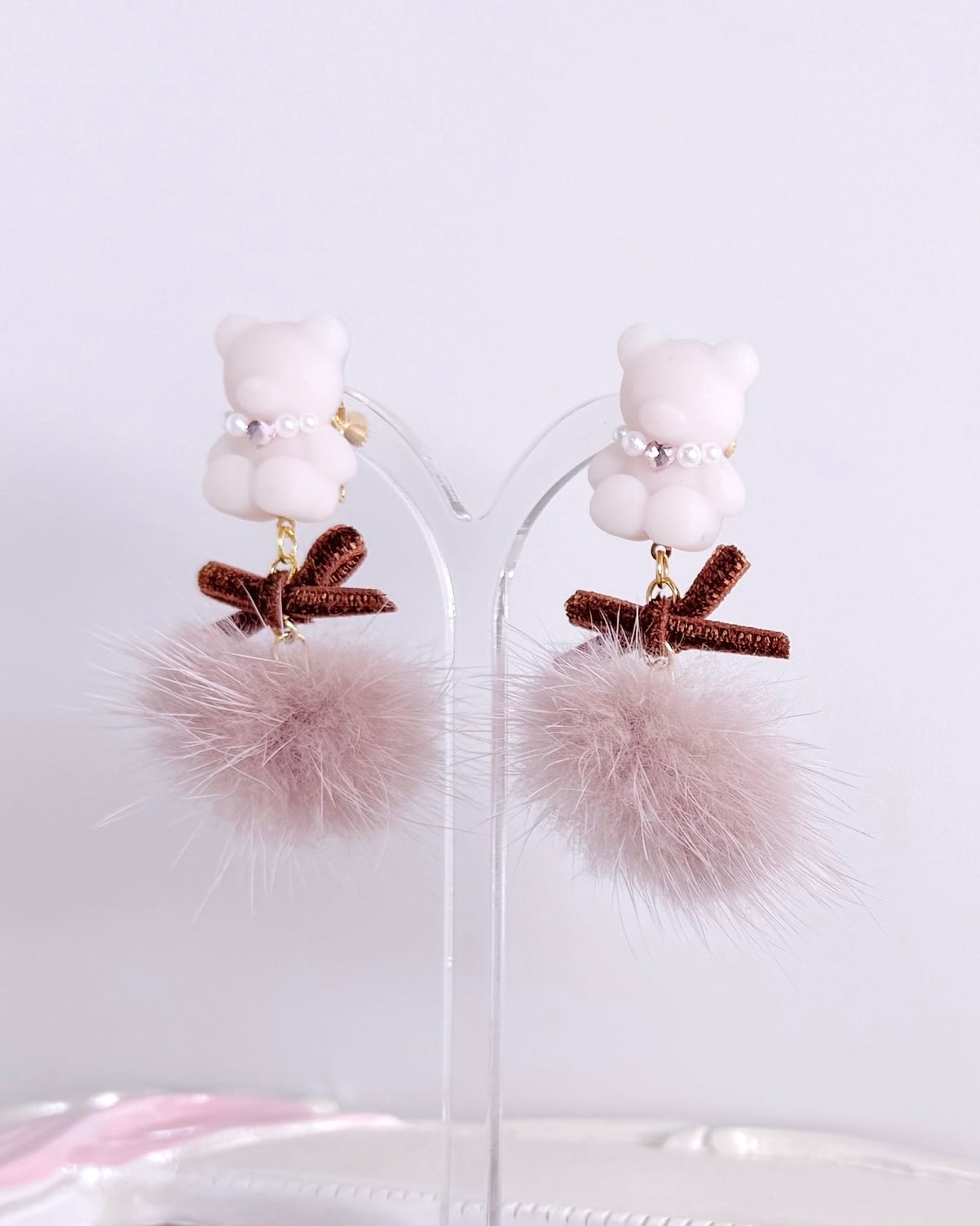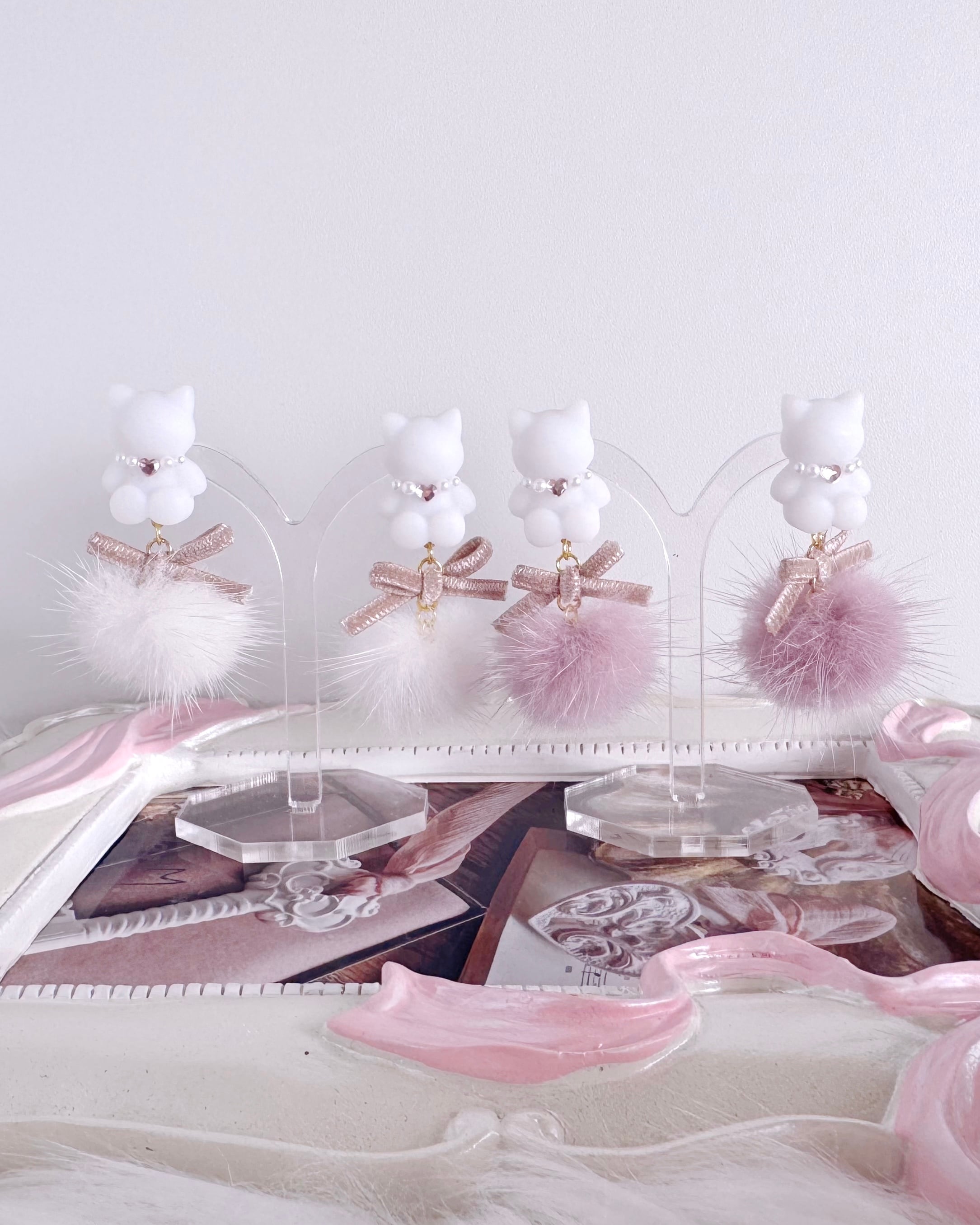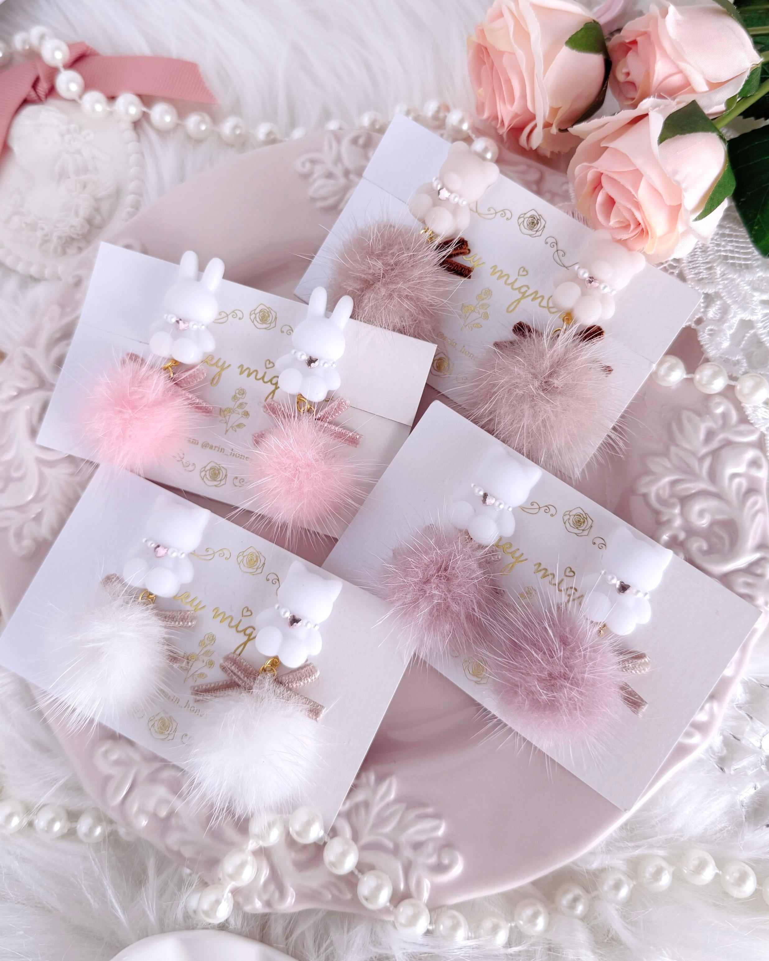 ころんとしたどうぶつモチーフに、ふんわり軽やかなファーを合わせた耳元アクセサリー。